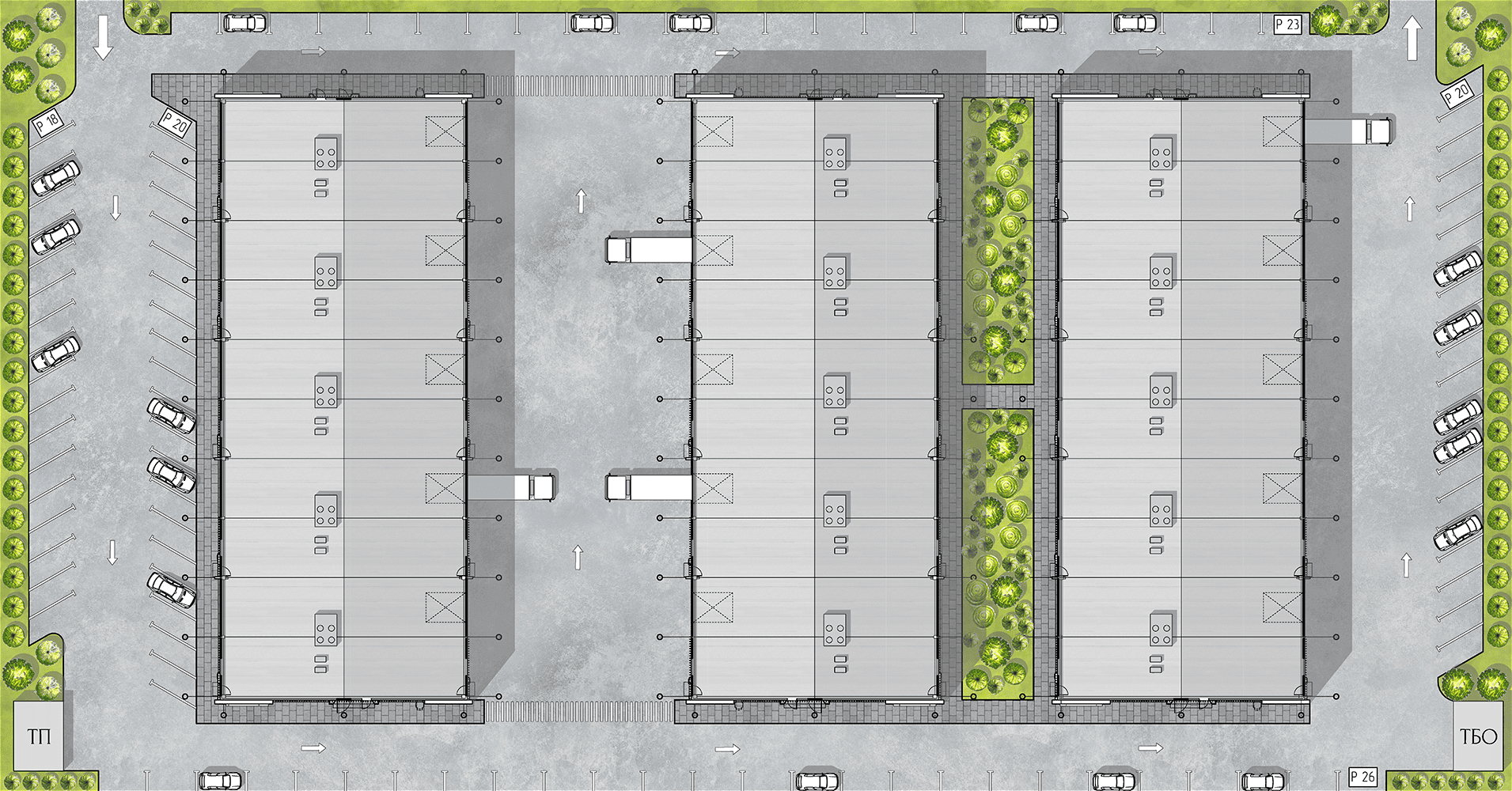 Модульность, заложенная в основе проекта, дает большую вариативность в организации внутреннего пространства зданий.